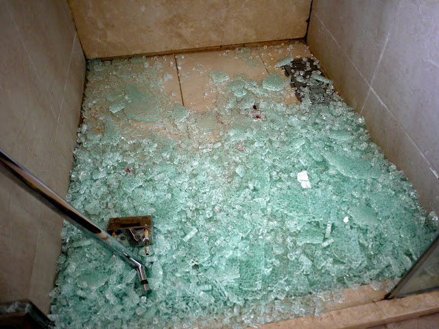 上禮拜一,晚上大約10點半,鋼牙龍正在洗澡,我抱著小說半躺在床上。那天好像在鋼牙龍進去洗澡前我們才鬥嘴過,所以我應該是打算用顏如玉來轉移注意力,幫助入眠。可我讀著讀著還不到睡眼惺忪,突然聽到好響的一陣玻璃碎裂的掉落聲響,然後跟著的是鋼牙龍的一聲慘叫。