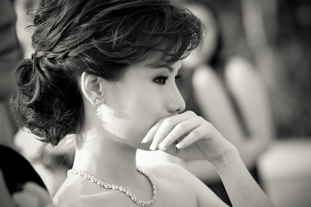 託呂伯伯的福,現場的感動氣氛整個凝聚了起來,只可惜這整段的照片其實新娘一點也不美,因為要不是太專著聽呂伯伯證婚而表情變得呆滯嚴肅,就是眼淚流下一邊配上太淘氣跑出來的大眼袋,找來找去能夠嚇唬人的也只有這種手把臉遮去大半的照片,真不知道志玲姐姐都是用那個牌子的眼霜啊!