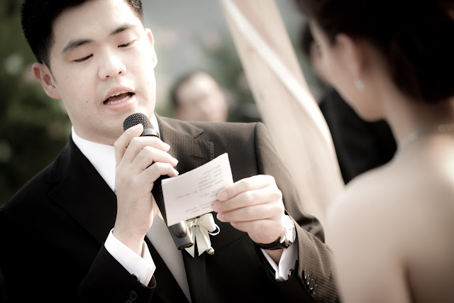 以上是鋪條路說明我們的婚禮走上了西式的不歸路,然後開始兩個人自己整自己的準備過程。噢不,準備場地和佈置和賓客邀請都不困難也很有趣,讓我們兩人不約而同逃避到最後一個禮拜才面對的是婚禮誓詞交換的這一段。