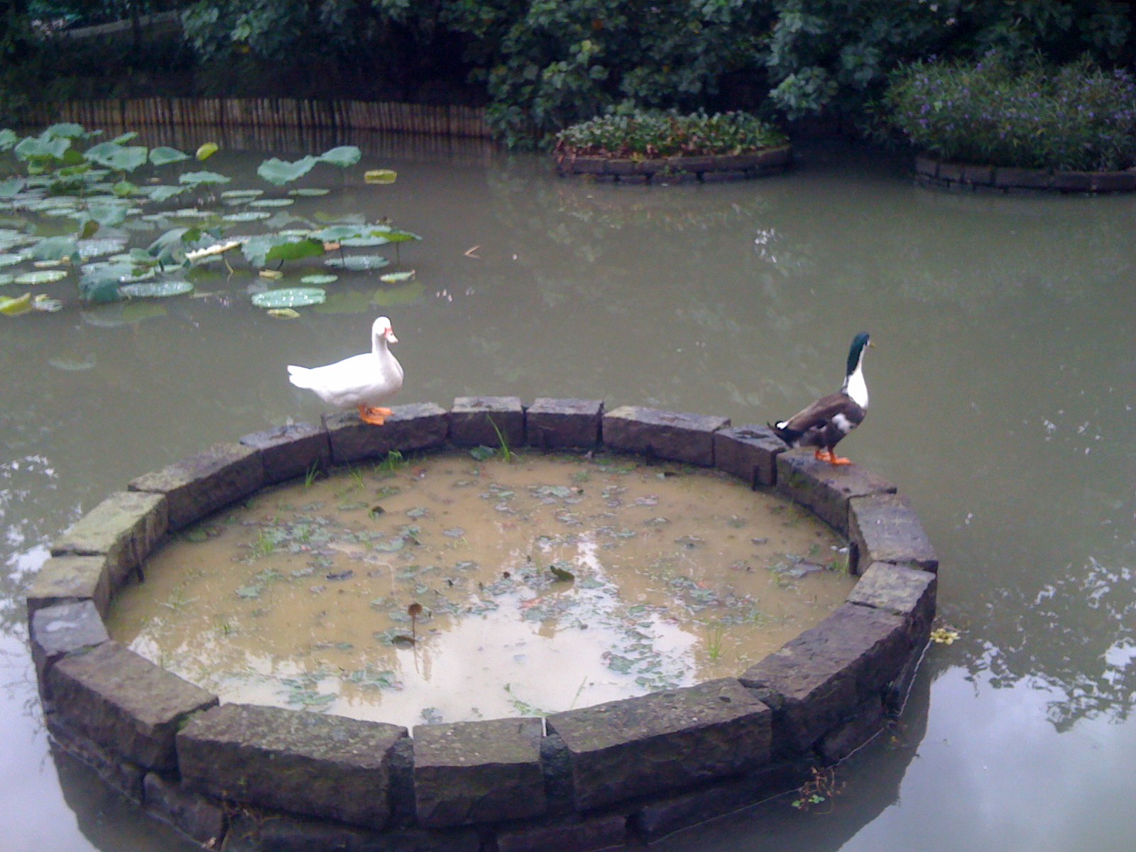 今天因為要出門辦事情,回程慢慢走還穿越了植物園,見到一對中年夫婦在門口爭吵,很替他們難過。我默默繞過滿是枯萎荷花的荷花池,心裡想的是什麼時候可以悠閒幸福的來這裡,卻也同時為了自己當下未能有那樣的感受而感覺罪惡。要走完池子的時候,看到了兩隻野鴨,和另外兩個路人一起停下來拿相機拍了起來。看來抬起頭來還是有好的風光景色。