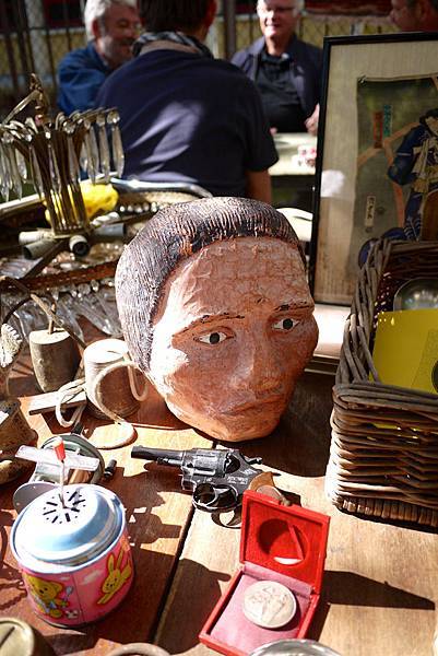 在這個週日跳蚤市場唯一入手的是一個不到拳頭大小但無敵重量的(貌似)紙模,就是在劉大龍流連忘返三十五分鐘的那一攤,男人對金屬的迷戀我不懂,但老闆阿莎力的標價50歐只賣40歐,迅速成交捧肚婆我不用再等很滿意。