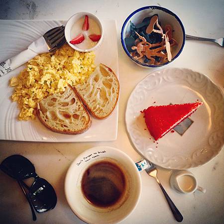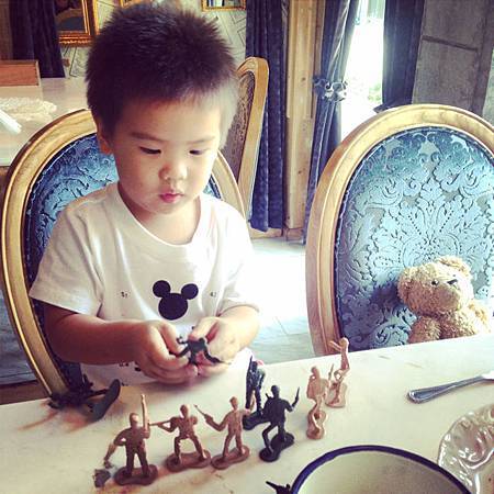 週六上午的蛋糕店還沒有什麼客人,我讓安仔自己挑選了他喜歡的座位,欽點中意的Teddy Bear陪坐,小姐送上一碗玩具小兵,除了我自己的早餐,很乾脆的幫他點了一個蛋糕,難得放縱獨享,兩個人在店裏坐了好一會兒。