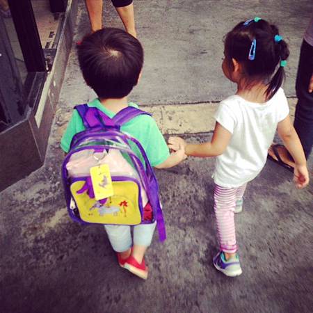 安仔牽手同學不是第一回,但最近走一個堅持的路線,看到別人牽手一定要衝上前去插一手,還不給別人拒絕的機會,緊緊抓牢說什麼也不放手。
