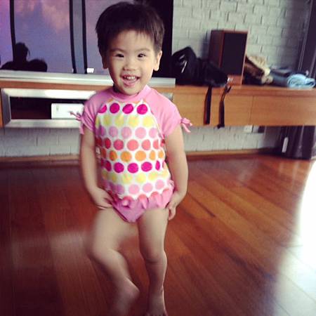 好個媽媽友請吃冰淇淋,又一個好媽友傳給我兩套女孩兒的游泳裝。