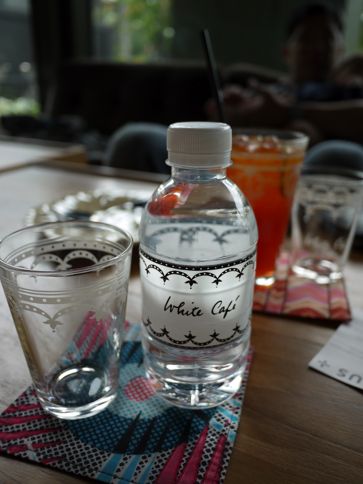 White Cafe就在新家附近,隔壁還開了讓我們流口水很多趟的傢具店,話說那天送安安外公外婆上飛機以後,一家三口終於掐到時間來光顧。這間店的裝潢乍看之下並不是我的菜,但是走了一圈注意到她用心挑選擺放和特製販賣的餐具或酒類,不得不說老闆是個好品味的人兒。