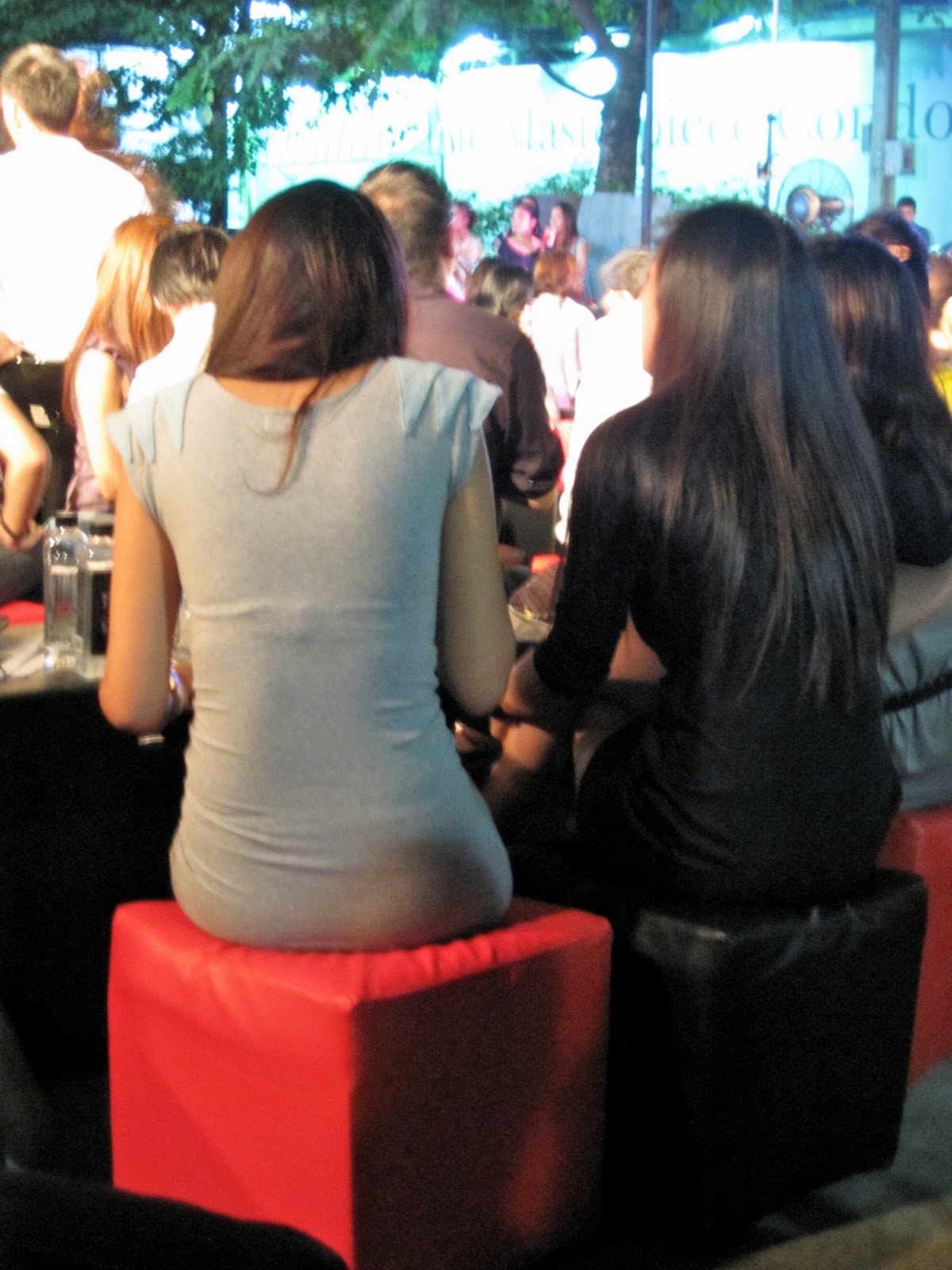 地點就在購物中心的小小停車場,整個是露天的,還好是辦在泰國涼爽的11月天傍晚,不然遇上35度的氣溫,配上滿場火辣泰國美妹,就算冰逼盧免費發,大家應該還是會聽到脫衣吧!