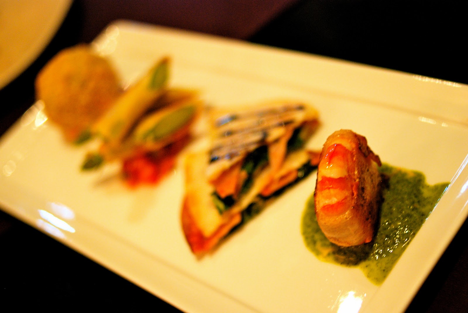 一組四樣簡單的tapas上桌,味道都還算不錯,可以感受廚師用心的設計和擺盤,食材也十分新鮮,可惜對我們沒有太驚艷地留下強烈印象,或許是因為少了酒精助興,畢竟這本來就是要配酒的小菜啊。龍先生和我有點不滿足的用完這餐,然後看著室外的坐位,約好等天氣涼爽一點,胃口和氣氛都再好一點,再來一次拜訪。